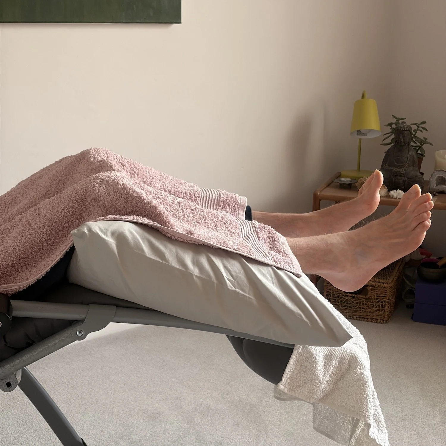 During the session, you will be comfortably positioned on a massage couch in my treatment room. If I am visiting you at home, I will adapt the setting, using a sofa, reclining chair, or even a bed to ensure you're relaxed and supported.